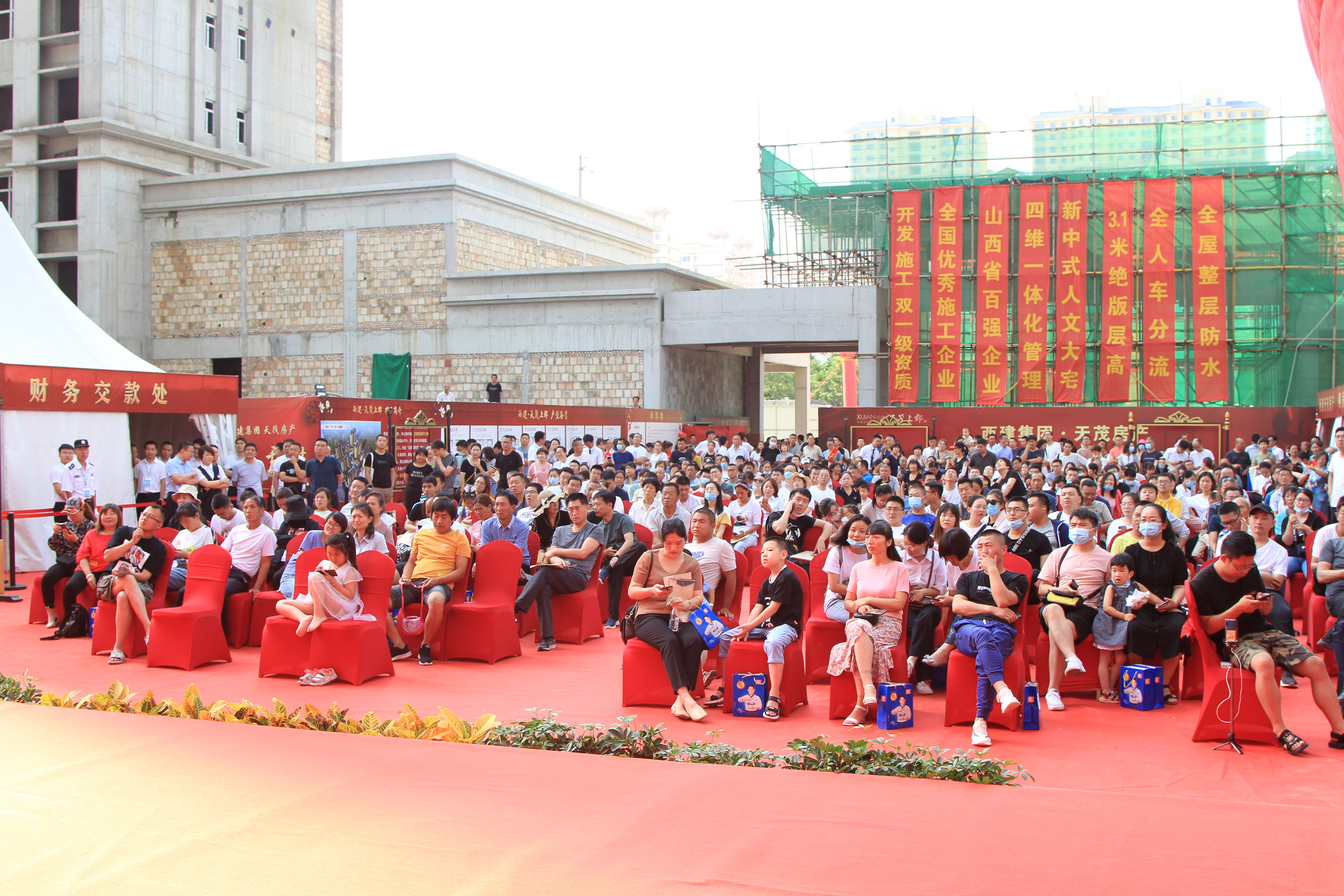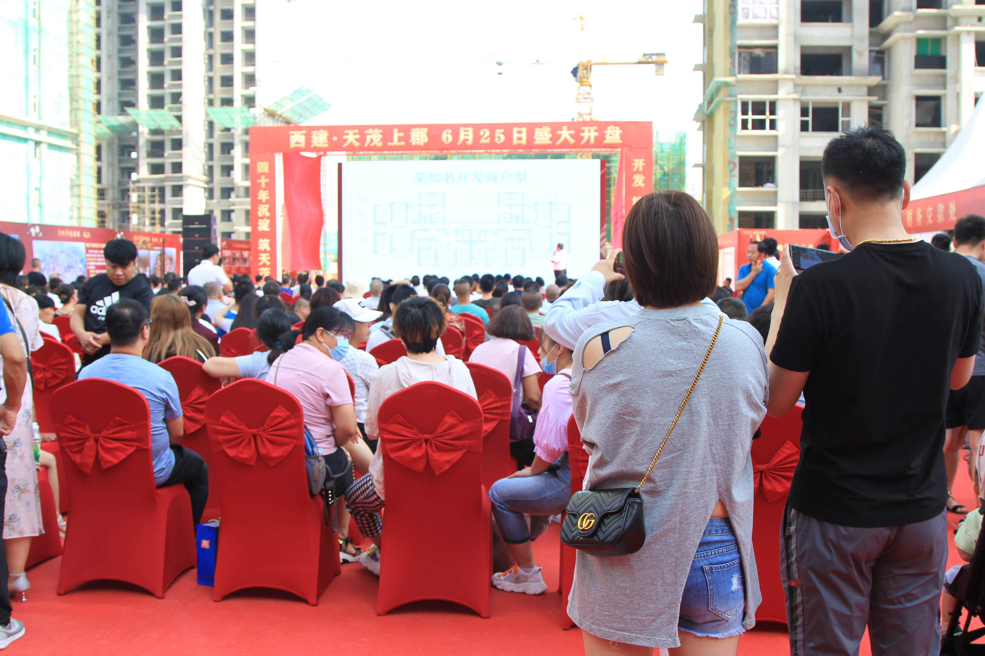 雖然天氣炎熱,但依然抵擋不住大家的熱情,開盤時間還未到,一支百人服務大隊整裝待發(fā),早早守候在天茂上郡中央廣場會場內,靜待尊貴的客戶蒞臨。距離開盤還有一個小時,偌大的會場早已人聲鼎沸,大家早早趕來生怕與心儀房源失之交臂,眾多購房者翹首以盼,焦急地等候開盤儀式,共同見證西建·天茂上郡開盤的盛況。
