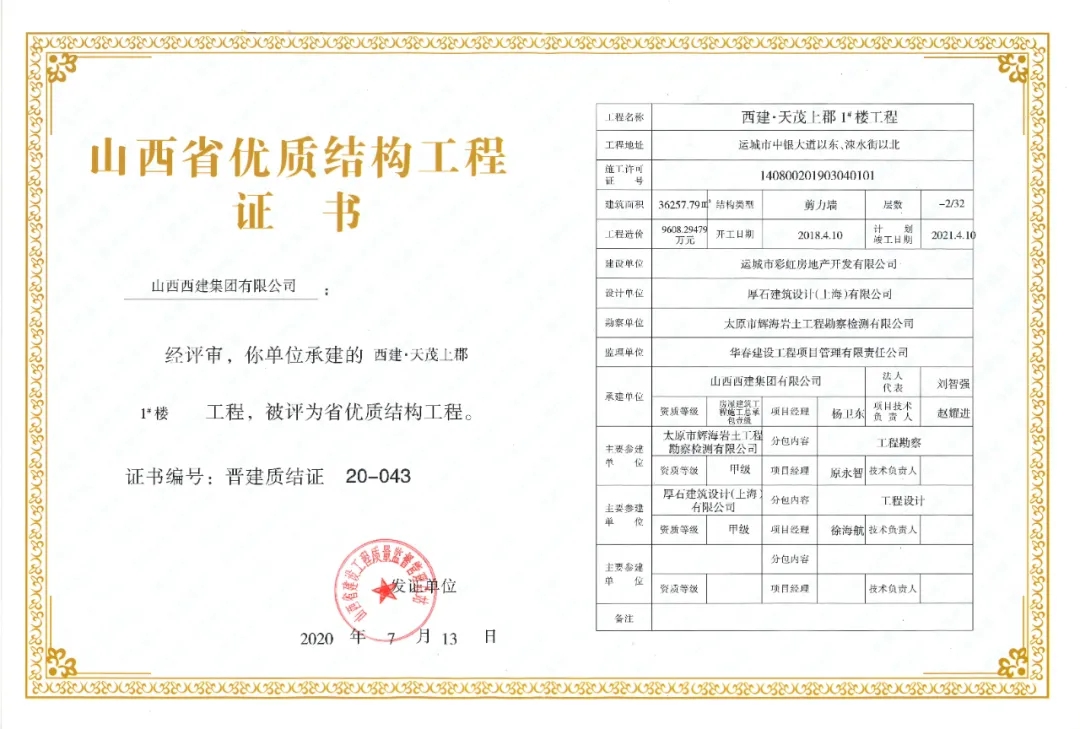 西建集團2020續寫榮耀傳奇,再度斬獲7項省優質結構工程獎