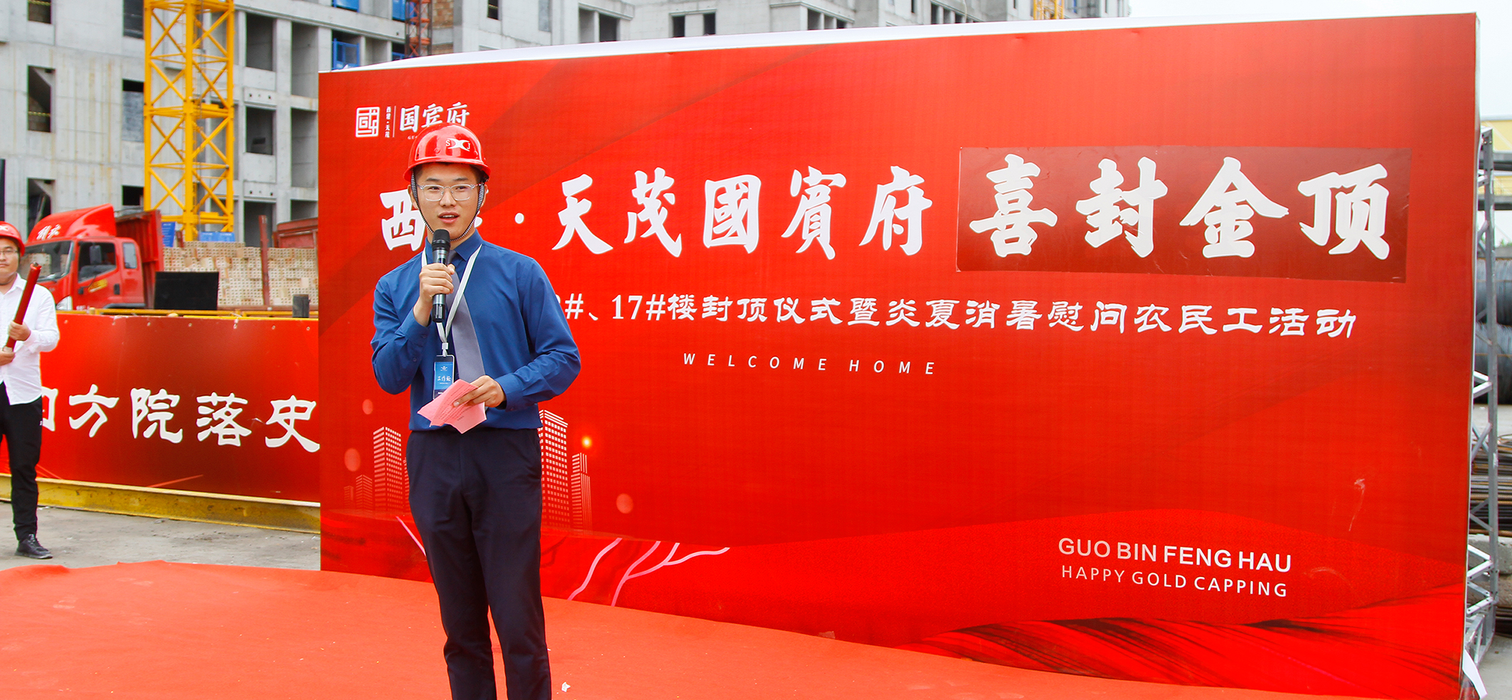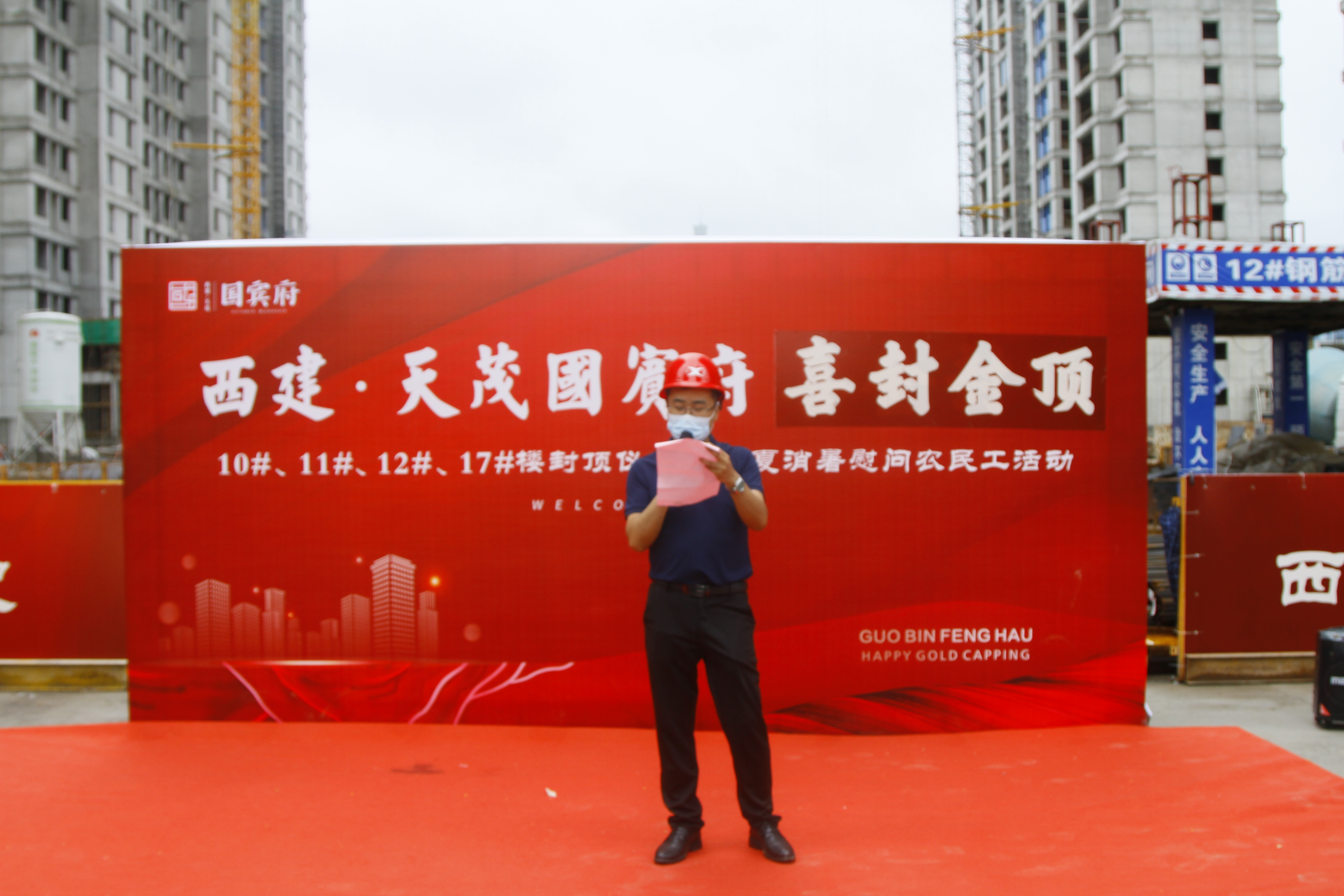 7月16號,西建·天茂國賓府的工地上塔吊聳立、人頭攢動,社會各界人士齊聚這里,熱烈慶祝西建·天茂國賓府10#、11#、12#、17#號樓喜封金頂,標(biāo)志著西建·天茂國賓府一期樓棟基本全部封頂!此次活動在7月16號上午正式開始,除活動工作人員外,特邀農(nóng)民工兄弟、業(yè)主代表、媒體精英、建設(shè)方代表等嘉賓蒞臨活動現(xiàn)場共享喜悅。