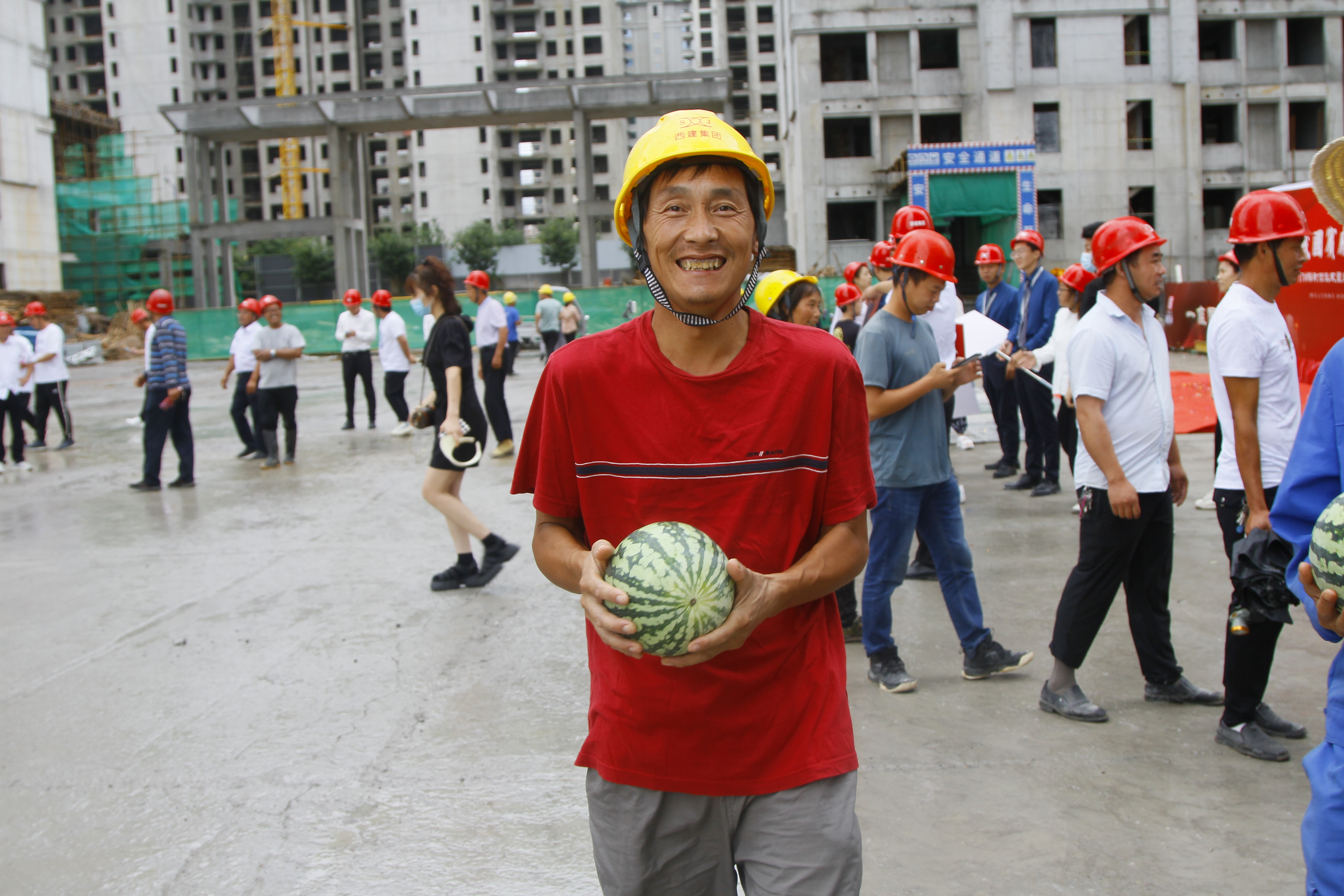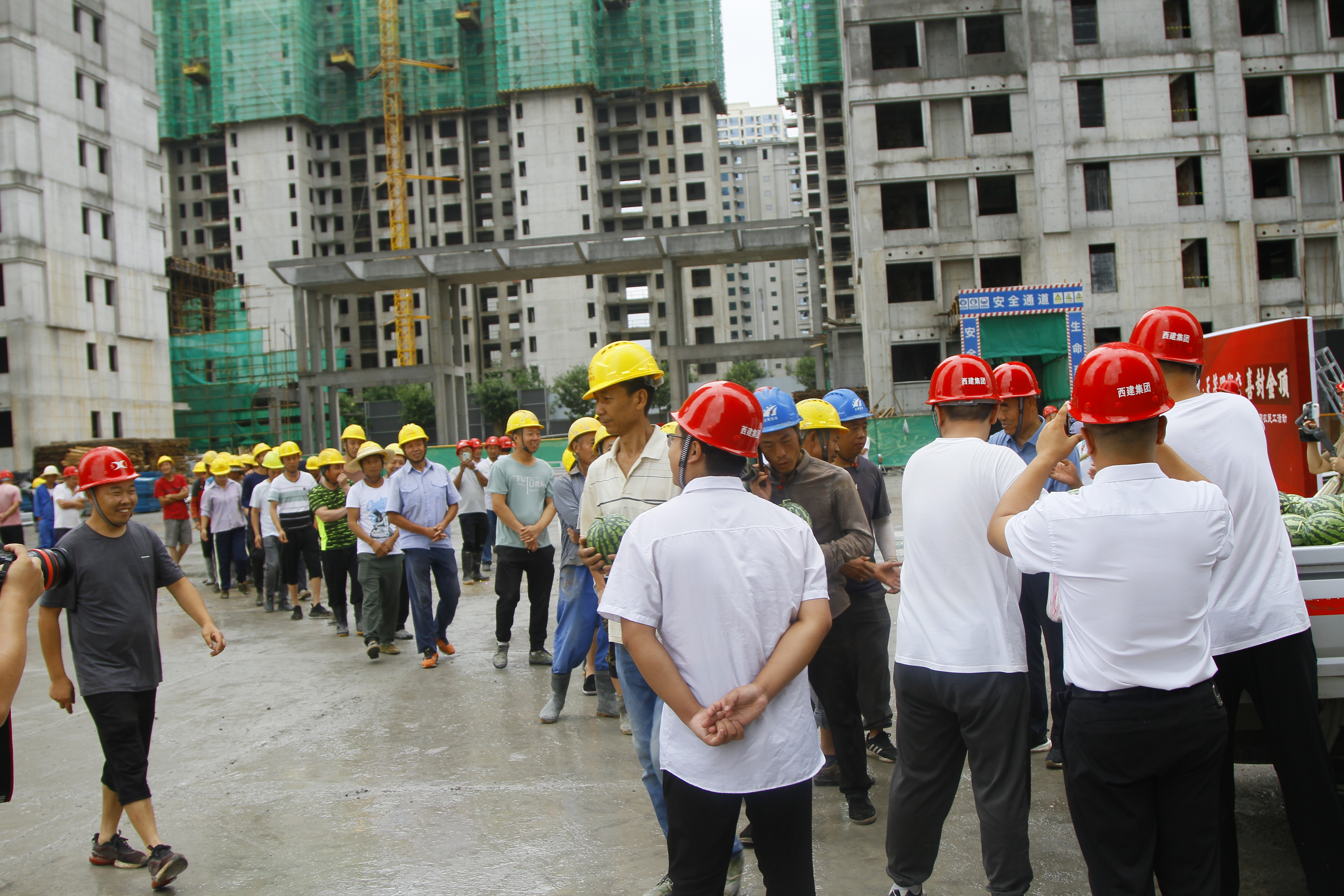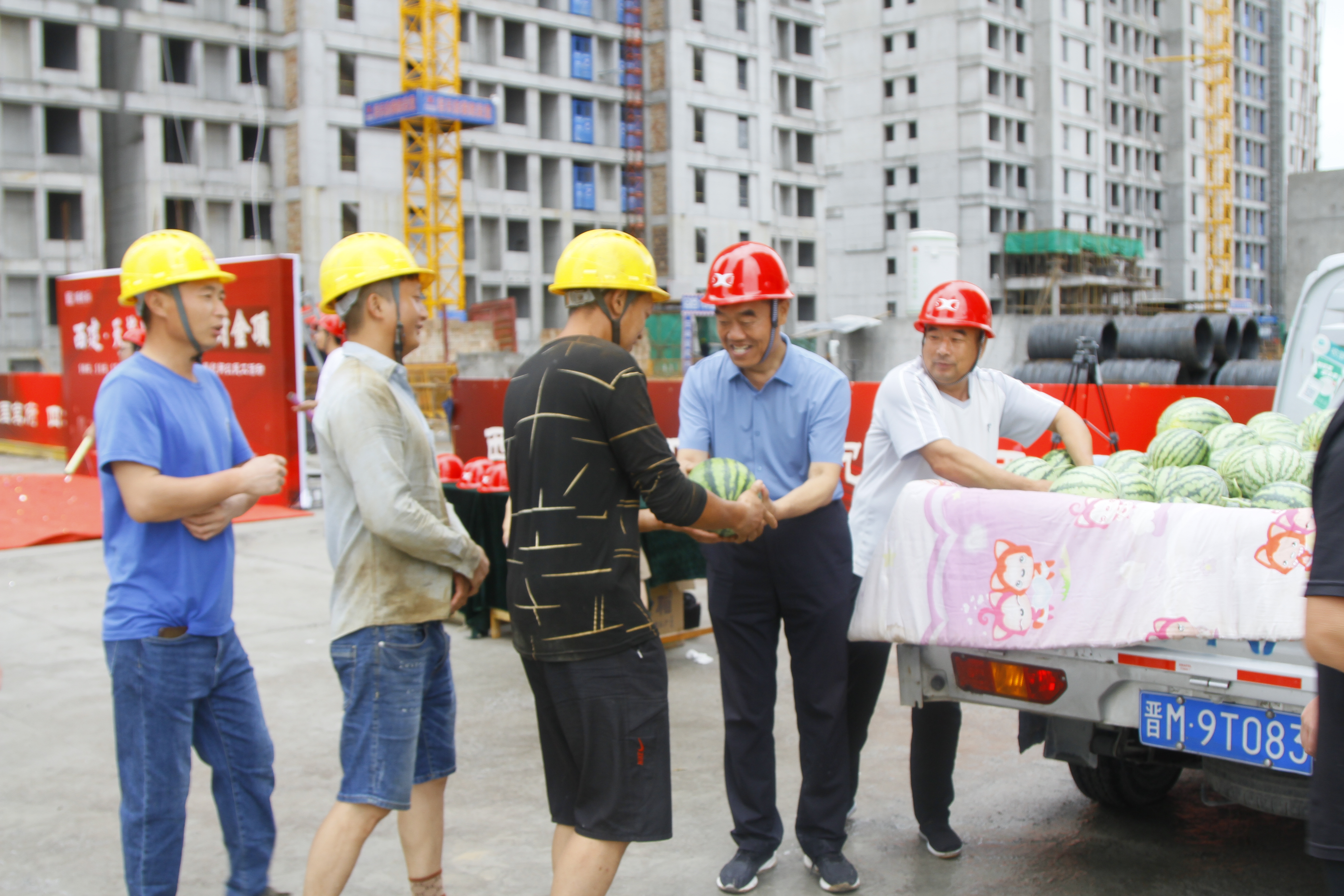 此次活動特意邀請農(nóng)民工兄弟代表參加,并為他們發(fā)放消暑用品,致以感謝