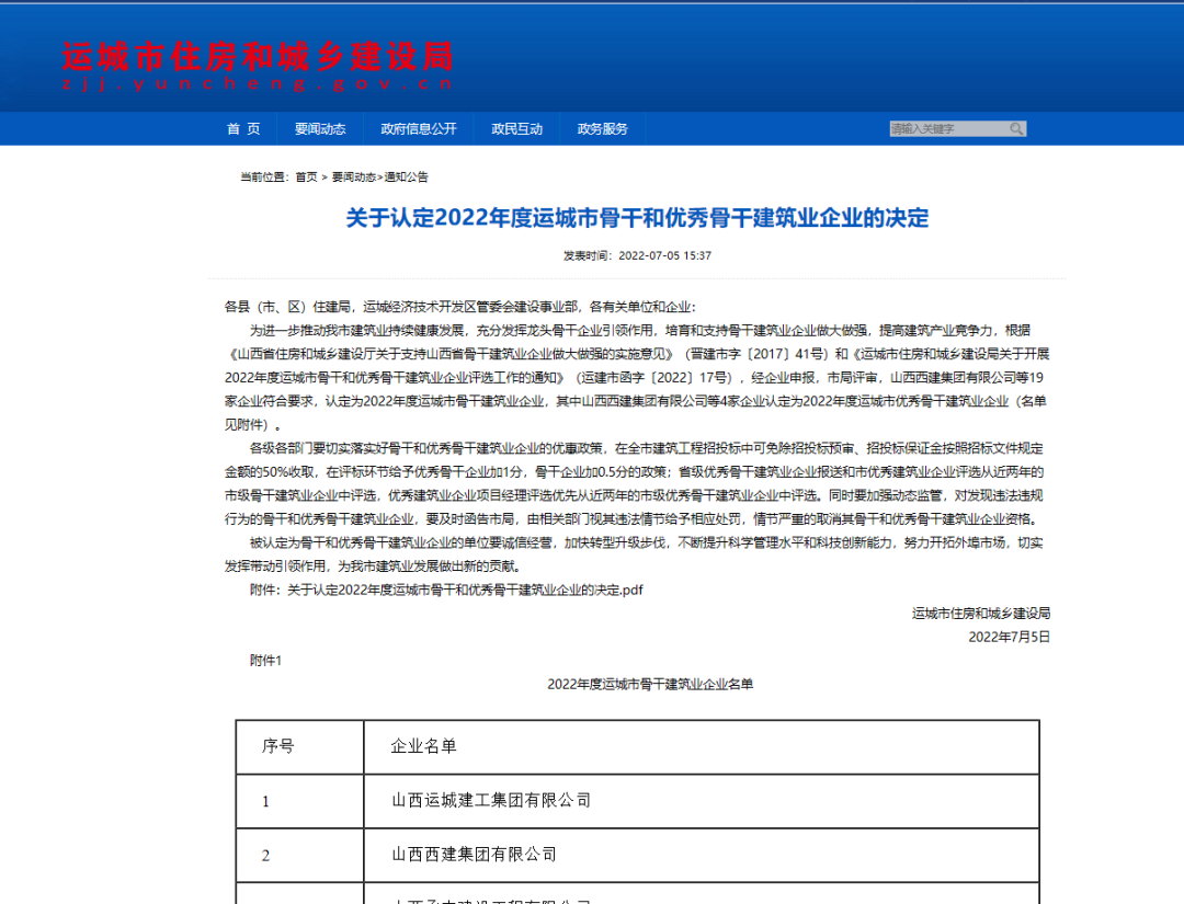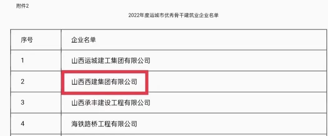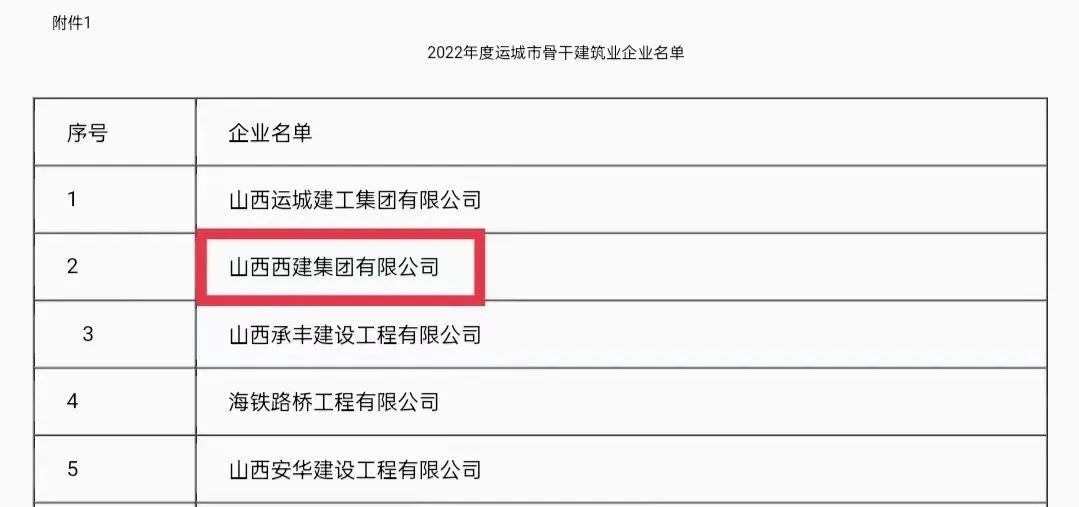 近日,從運(yùn)城市住房和城鄉(xiāng)建設(shè)局傳來喜訊,山西西建集團(tuán)有限公司憑借雄厚的實(shí)力和突出的業(yè)績,一舉斬獲“2022年度運(yùn)城市骨干建筑業(yè)企業(yè)”和“2022年度運(yùn)城市優(yōu)秀骨干建筑業(yè)企業(yè)”雙重稱號。
