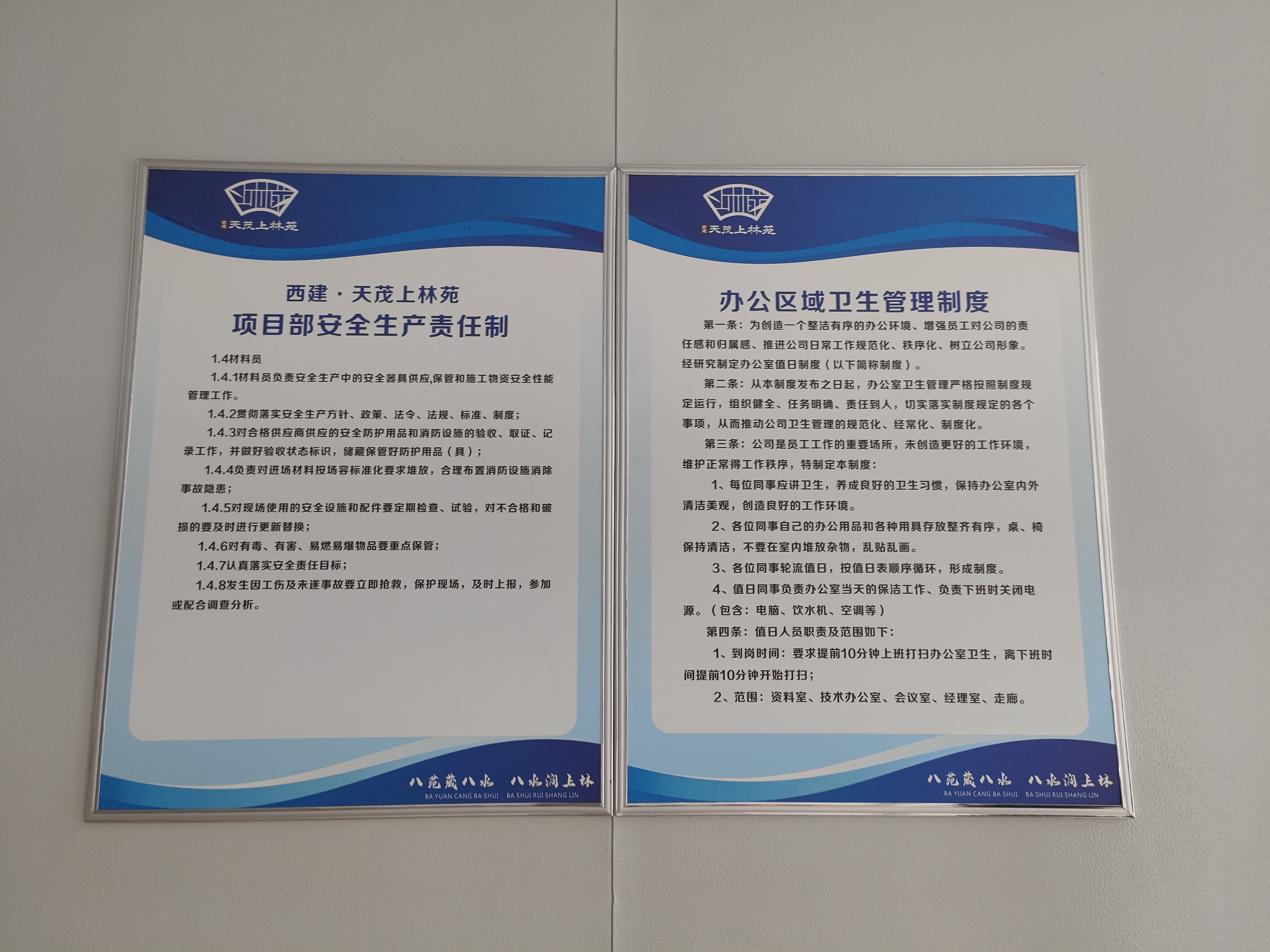 西建集團(tuán)在工程建造上始終堅(jiān)持技術(shù)引領(lǐng)、創(chuàng)新驅(qū)動(dòng)的理念,對(duì)于產(chǎn)品品質(zhì)的精準(zhǔn)把控,貫穿在西建開發(fā)項(xiàng)目現(xiàn)場(chǎng)的每一處,工地到處張貼的管理制度正是最好的體現(xiàn)。