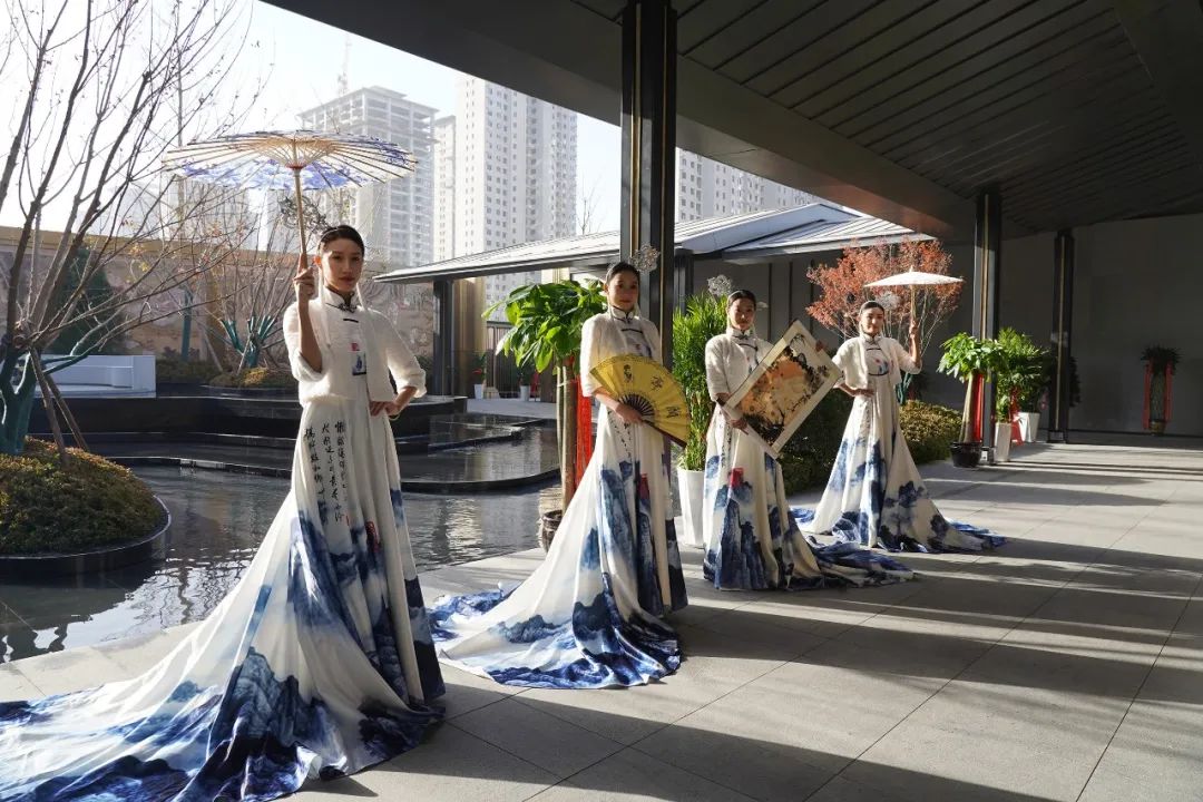 峨宮廷,為設計理念,納漢風磅礴之威儀,集宋氏美學之儒雅,打造秀外慧中的傳統文脈美學精品。長樂未央展示中心總造價3000余萬元。園區以雅居靈石,絲路華章,啟幕長樂未央的儒韻篇章;墨蘭初曉、蘭庭序章,以古箋和墨蘭,打造震古爍