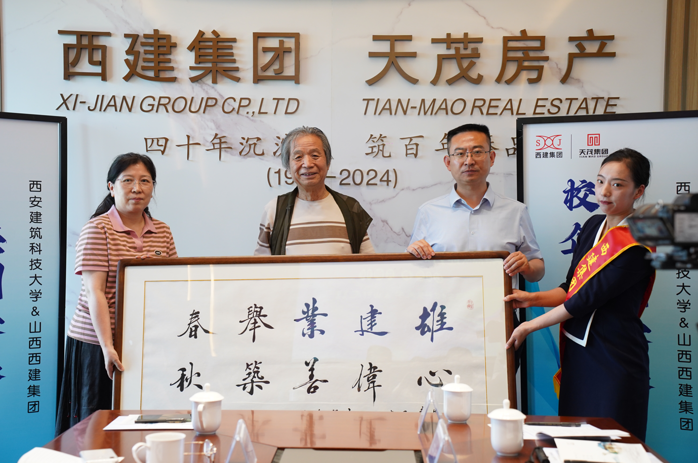 2024年3月份,西建集團天茂房產總經理劉忠森,向母校西安建筑科技大學“紅燭”基金捐款10萬元。為了表達對校友的感謝,及共促校企合作新征程。2024年5月30日,西安建筑科技大學副校長董群雁一行深入走訪校友劉忠森企業西建集團。西安建大老教授協會會長王齊銘,西安建大離退休辦公室主任樊宏斌,西安建大管理學院黨委副書記、副院長周琳,西安建大退休辦黨委副書記張俏,西安建大教育基金管理部部長張廣敏,西安建大老教授協會秘書長趙安啟,西安建大離退休辦公室主任、離休科科長陳琳,西安建大老教授協會劉炳南教授,西安建大老年大學高鑫等領導,及教授隨同調研。原運城市委常委、人大常委會副主任王正風,運城市住建局副局長郭強,西建集團天茂房產總經理劉忠森接待陪同。