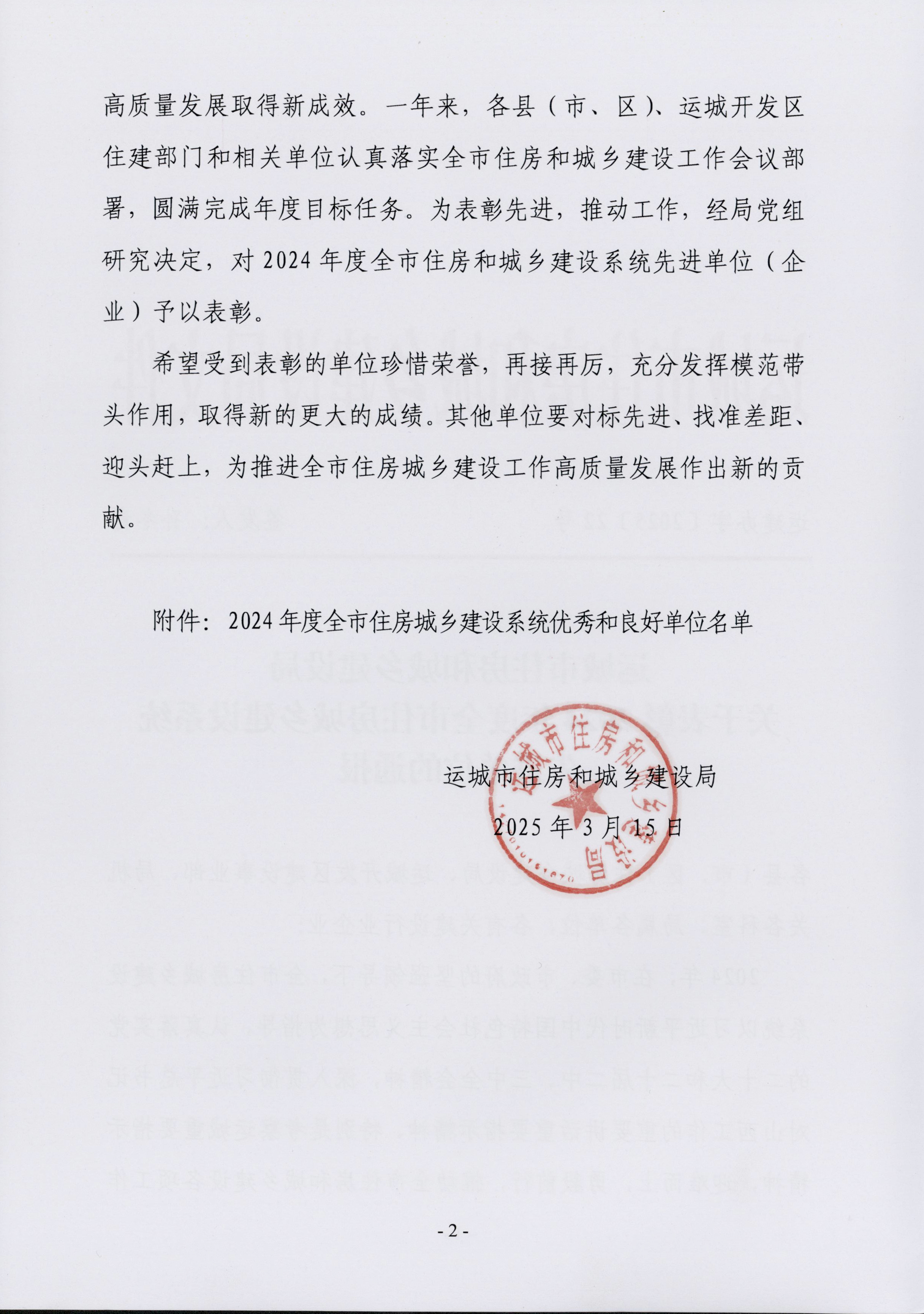 2025年3月15日,運城市住房和城鄉建設工作會議圓滿召開。西建集團天茂房產榮膺四項大獎。會上,西建集團天茂房產總經理劉忠森,作為房企代表發言。運城市住房和城鄉建設局發布了關于表彰2024年度全市住房城鄉建設系統優秀和良好單位名單,其中西建集團一舉斬獲四項殊榮。