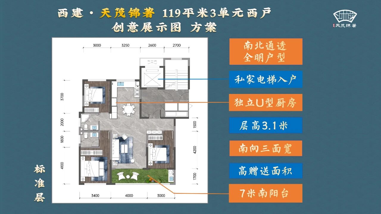 上林錦著此次開售二期:10#樓3單元,建面約119-129㎡